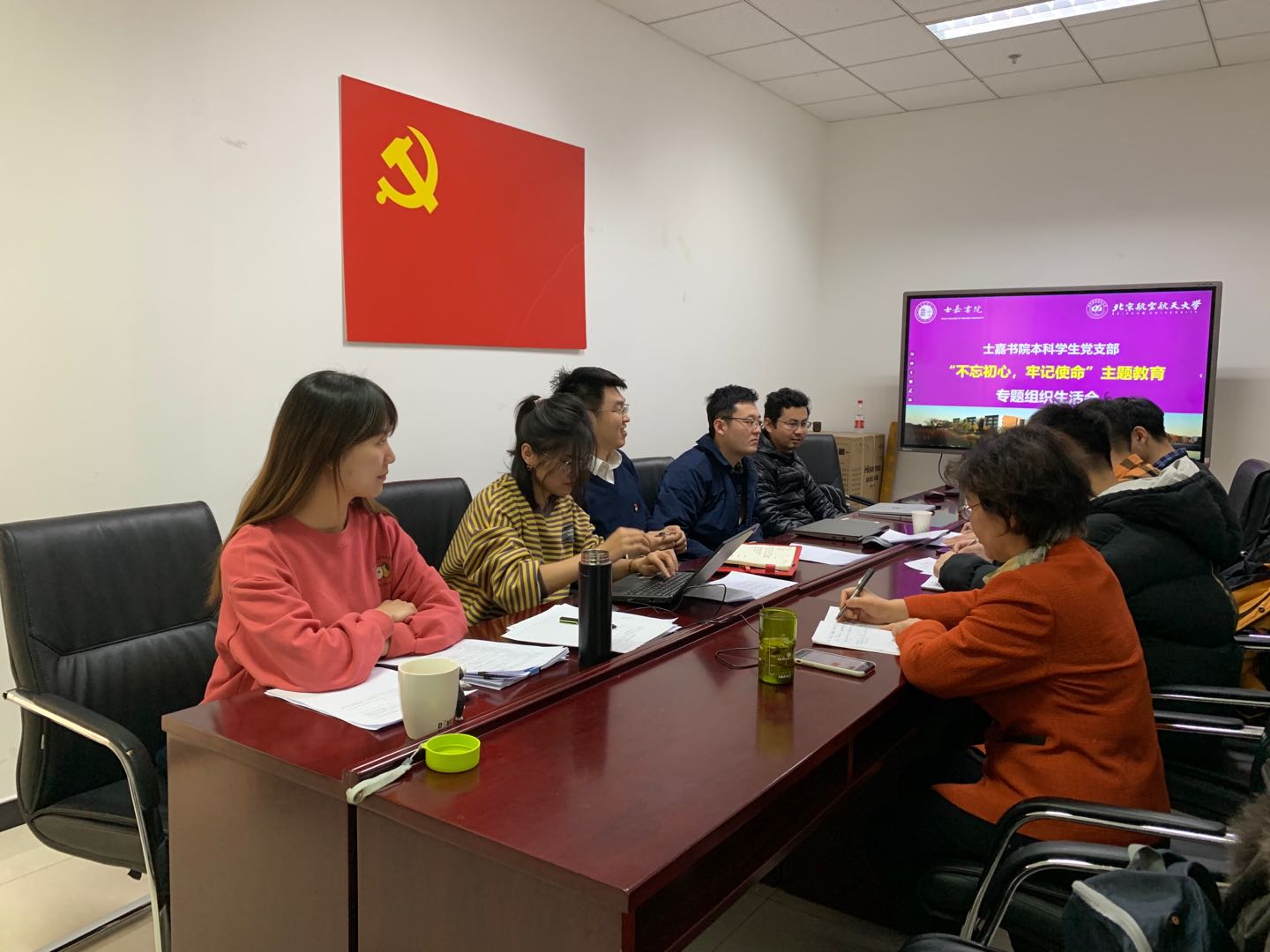 (通讯员 于万欣 冀赵杰)2019年12月4日上午,士嘉书院本科员工党支部于沙河校区主楼B607召开“不忘初心,牢记使命”主题教育专题组织生活会,进行近期党建工作的总结及党员的批评与自我批评,支部全体党员出席会议,支部特邀党建组织员王梦丽,公司党委委员、致真书院执行经理闵敏列席会议,会议由支部书记冀赵杰主持。
