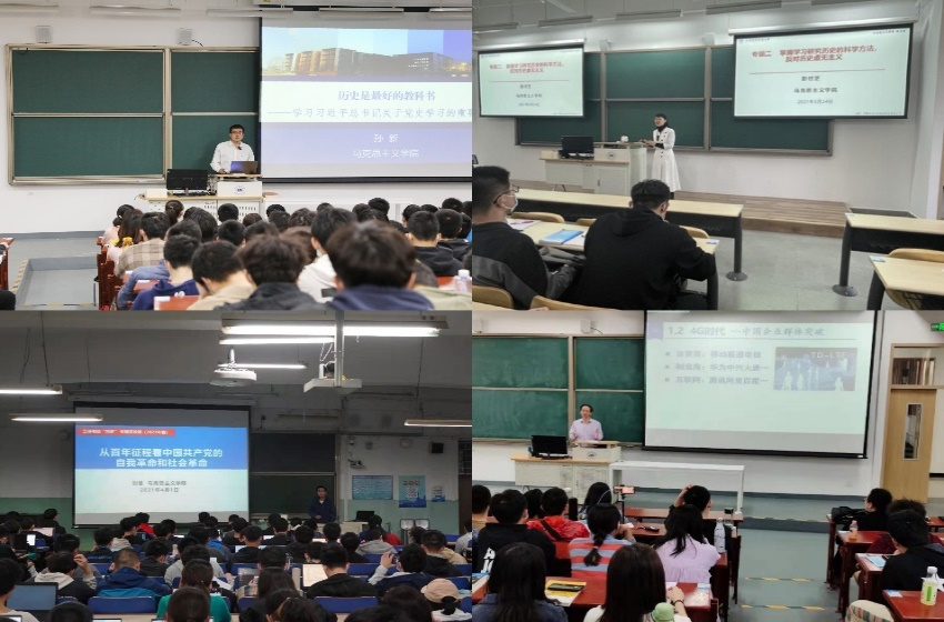 在系列专题课中,马克思主义学院孙新老师讲授课程第一讲《历史是最好的教科书——习近平总书记关于党史学习的重要论述》,从历史维度出发,以史鉴今,用生动的党史故事和鲜活素材,带领同学们深入学习习近平总书记在党史学习教育动员大会上的重要讲话精神。马克思主义学院彭付芝教授讲授第二讲《掌握学习研究历史的科学方法,反对历史虚无主义》,她从历史与历史学讲起,提出学习研究“四史”的科学方法,鼓励同学们掌握学习研究历史的科学方法。马克思主义学院刘佳老师讲授第三讲《从百年征程看中国共产党的自我革命和社会革命》,他以时间为顺序,从厚重的历史中找到其内在的必然联系,使同学们对共产党的社会革命有了更加深刻的认识和理解。