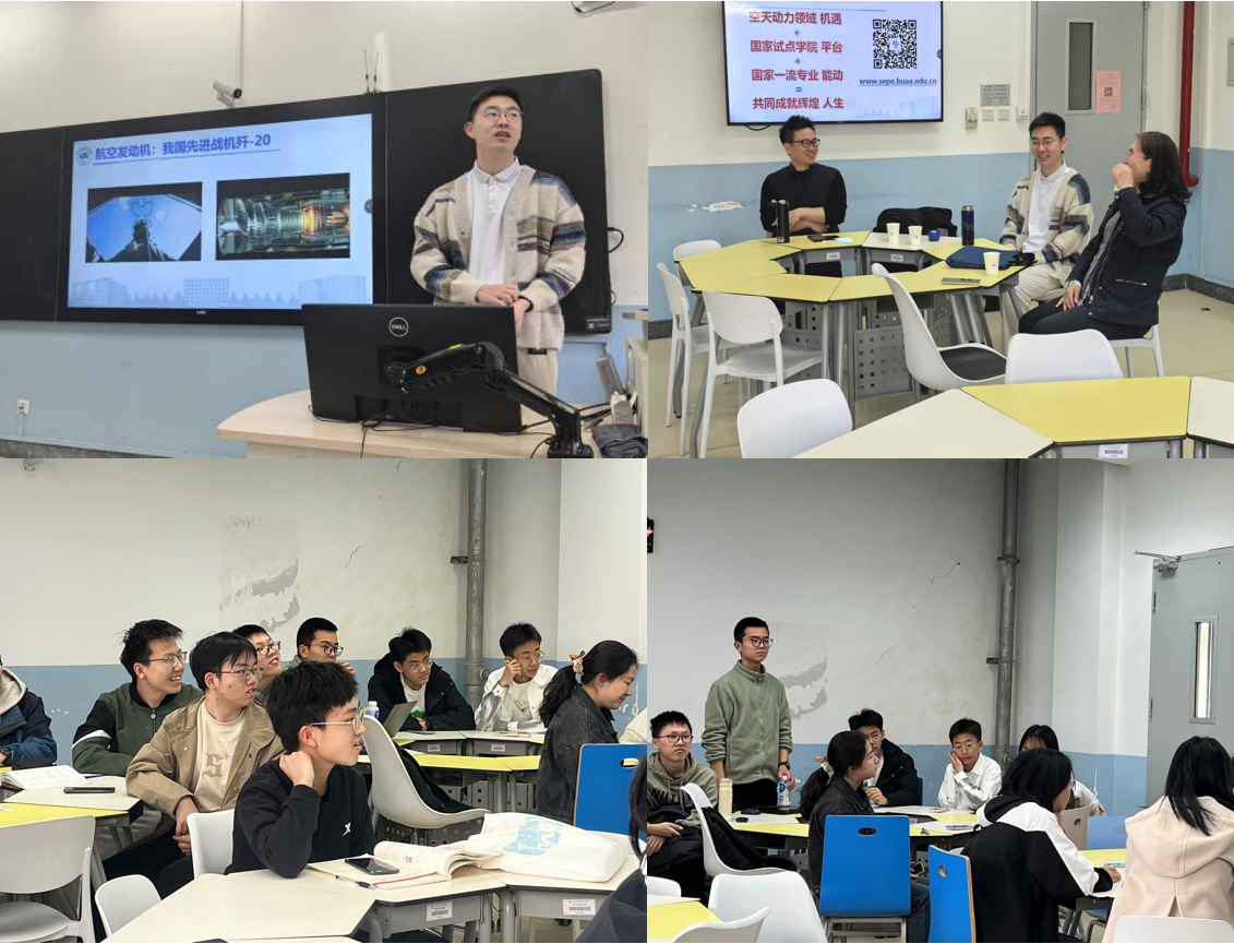 首先,刘宇杰学长结合往年情况,较为系统地介绍了学院的发展历程、学科特色、团队力量以及人才培养体系,帮助同学们全面了解动力学院的平台优势和发展前景。随后,同学们围绕专业选择、课程学习、科研实践、职业规划等方面踊跃提问。申老师和李老师结合工作经验、本硕博生成长案例为同学们全方位答疑解惑。