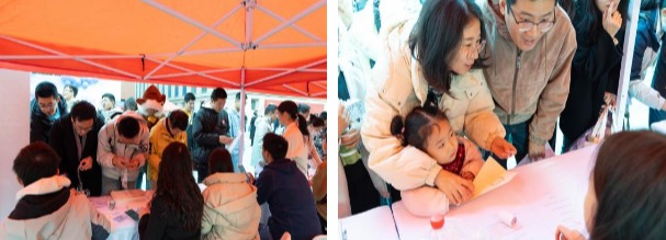 “航续华章”主题摊位同样亮点纷呈,精准呼应北航“空天特色”。“‘纸’向蓝天”纸飞机折叠活动中,参与者充分发挥创意,折出形态各异的纸飞机,当承载着航天愿景的纸飞机在空中翱翔时,不仅展现了北航学子的动手能力,更成为北航人“空天情怀”的生动写照;“笔墨留声”寄语环节更添温情,师生与员工在便利贴上写下对学校的祝福与期许,这些寄语将由书院统一封存,待 2026 年校庆时启封,让这份对北航的深情实现“跨年度传承”。