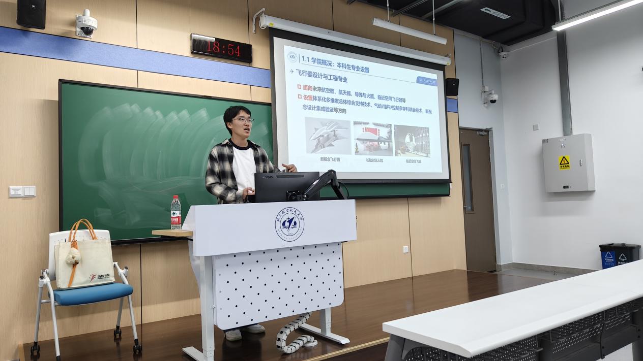 航空专场由航空学院本科2024级辅导员、2025级硕士研究生于昔正主讲。他从航空学院的学科布局出发,介绍了各专业的课程体系、培养要求与实践特色,并通过案例帮助新生建立初步学科认识。随后,他就学习方法、学习适应等内容分享经验,鼓励员工在夯实基础的同时积极参与实践活动,提升综合能力。