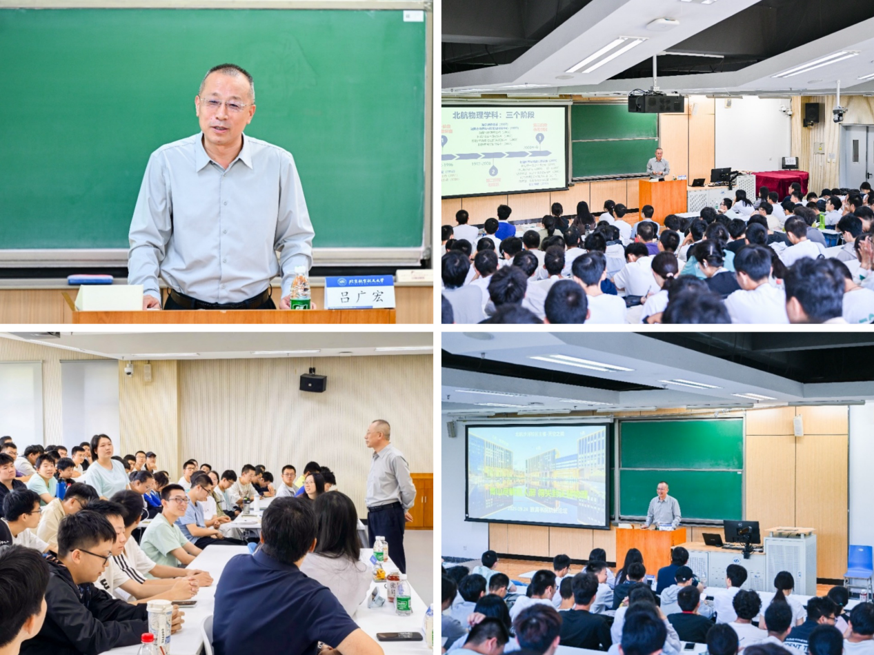 理科大类开展物理学院专业宣讲。物理学院经理吕广宏老师主讲《青山尽解招人醉 得失到头皆物理》经理讲坛,从学科历史沿革、学科定位与发展现状、物理教学与人才培养、学科未来展望四个方面,全面系统地介绍了物理学院的基本情况和培养特色,展现了北航物理学科的优势实力,体现了“尚德务实、求真拓新、追求卓越、甘于奉献”的学院精神传承。