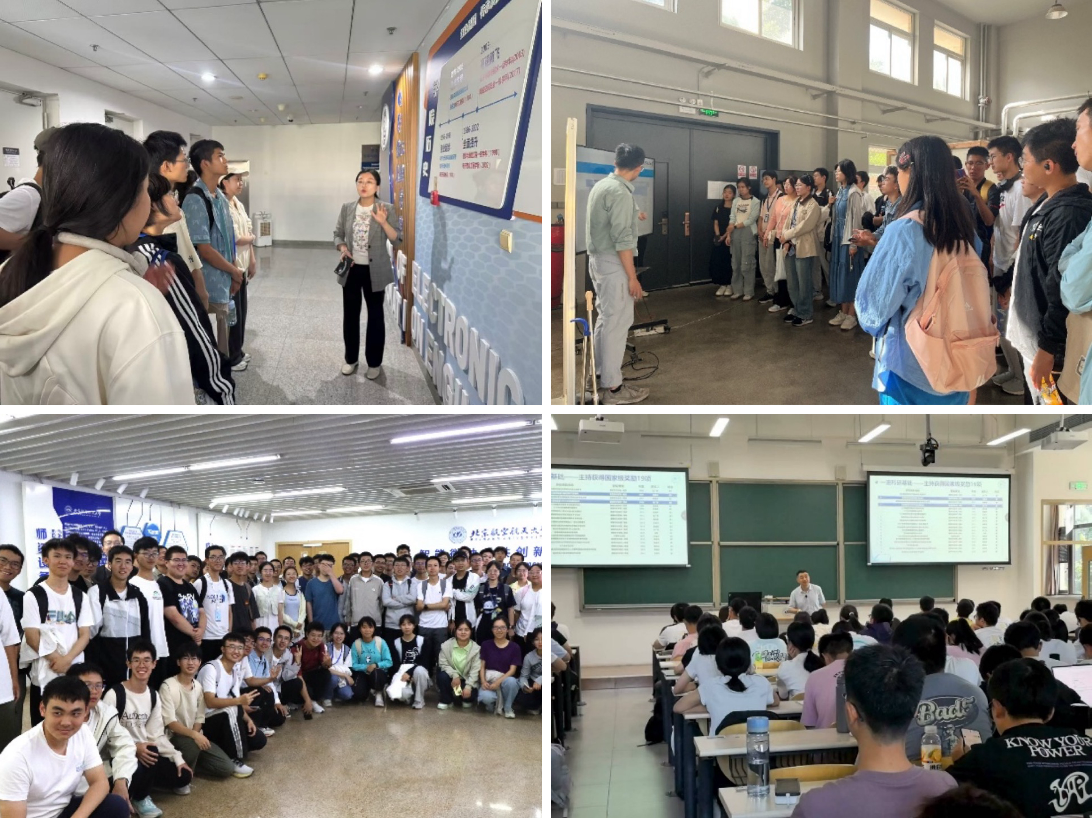 航空航天类的同学们在此次专业行活动中走访各学院实验室并聆听专题讲座,亲身体验航空航天的魅力。材料科学与工程学院赵新青老师以记忆金属产生记忆效应的机制及其具体应用为实例对学院研究内容进行讲解,随后的实验室参观将抽象的理论与前沿的科研实践紧密结合,使同学们对材料学科的前沿发展现状有了深刻的理解。能源与动力工程学院副经理额日其太老师从培养目标、培养方案、学院优势、研究方向等多个角度系统介绍了能源与动力工程学院飞行器动力工程、能源与动力工程、空天智能电推进技术专业的具体情况。航空科学与工程学院郭昊老师系统介绍了学院整体情况,围绕创建历史与发展历程展开阐述,全面展示了学院在学科方向、重大贡献、人才培养等方面的优势,帮助同学们直观领略学院鲜明的学科特色。机械工程及自动化学院王巍老师从硬件、软件角度详细介绍了机器人的组成结构及功能特点,并深入剖析了机器人系统技术体系的核心,引导同学们思考理解机器人技术的系统性特点,为未来的学习和研究奠定坚实基础。生物与医学工程学院孙联文老师带来《北航生物医学工程》主题报告,展示了北航生物医学工程专业从零起步,历经萌芽阶段,最终跃升至全国领先并荣获A+学科认证的辉煌历程,激励同学们积极投身生医领域,共同探索。交通科学与工程学院崔志勇老师做《空地一体 智慧交通》主题报告,详细介绍了交通学院各专业的特点特色和学科优势,随后的实验室参观使同学们更加具体感受到了交通学院的专业特点。可靠性与系统工程学院李晓阳老师、陈世舜博士以“可靠的内涵”为切入点,循序渐进地揭示了可靠性系统工程的理论内涵与应用价值。通过多样的航空航天实例展示,使同学们切实感受到可靠性研究的前沿探索与现实意义,引导大家从工程、生命、文学、艺术及社会等多维视角理解可靠性的普适性与广阔前景。宇航学院李家军老师从人类飞天探索引入宇航,带领同学们穿越时空长廊,回顾了从万户飞天到神舟巡天的壮阔征程,生动讲述了北航宇航学院如何秉承空天报国精神,为我国航天事业输送了大批领军人才。